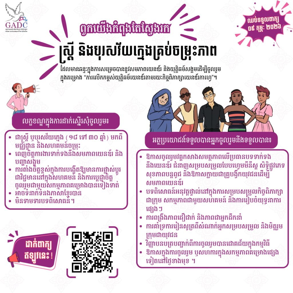 ពួកយើងកំពុងតែស្វែងរកស្រ្តី និងបុរសវ័យក្មេងគ្រប់ចម្រុះភាព